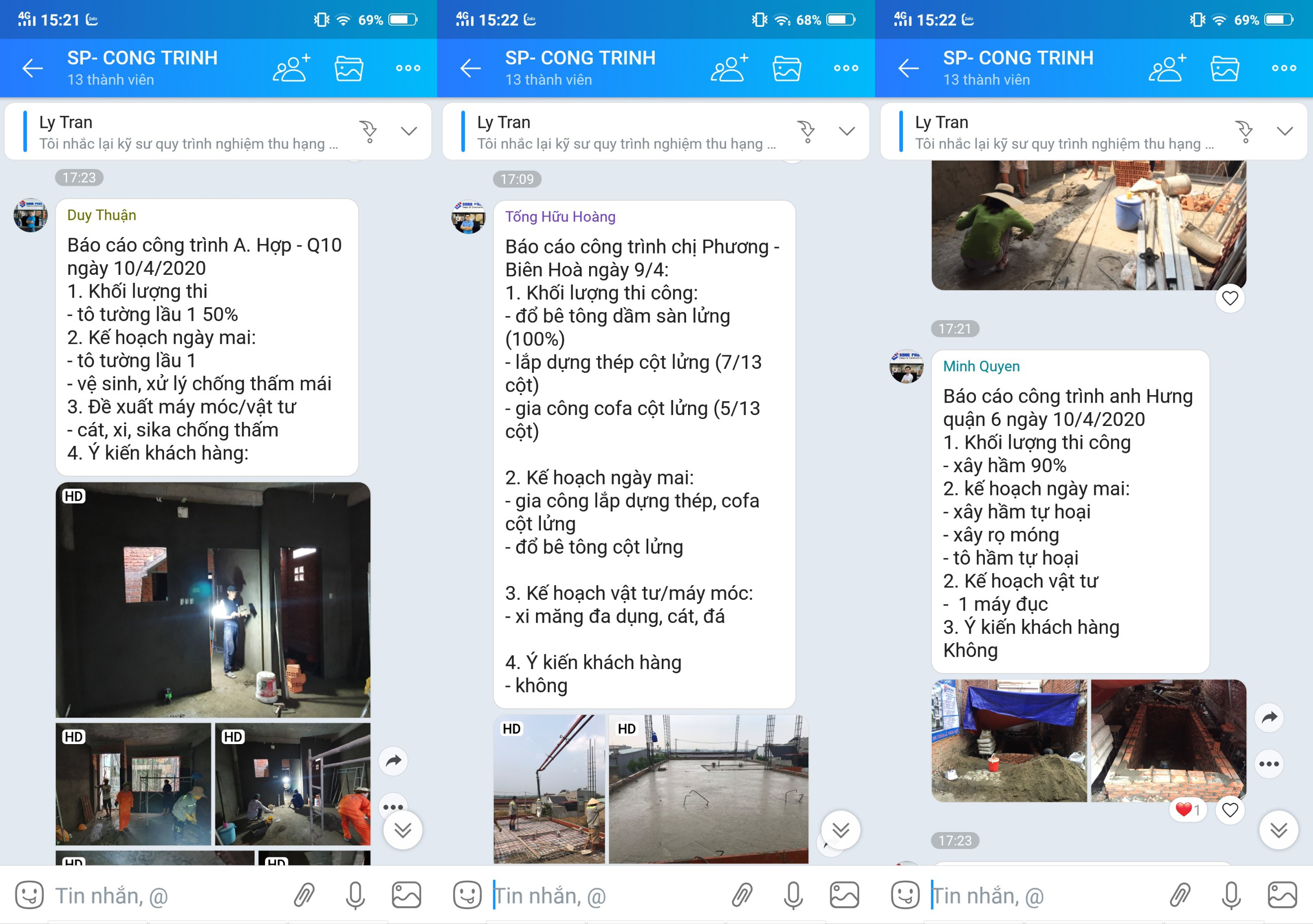 Nhằm đảm bảo công trình đang diễn ra đúng tiến độ, kỹ sư Song Phát đều phải thực hiện những báo cáo hàng ngày, về tiến độ thi công ngôi nhà mà mình đang phụ trách trực tiếp.