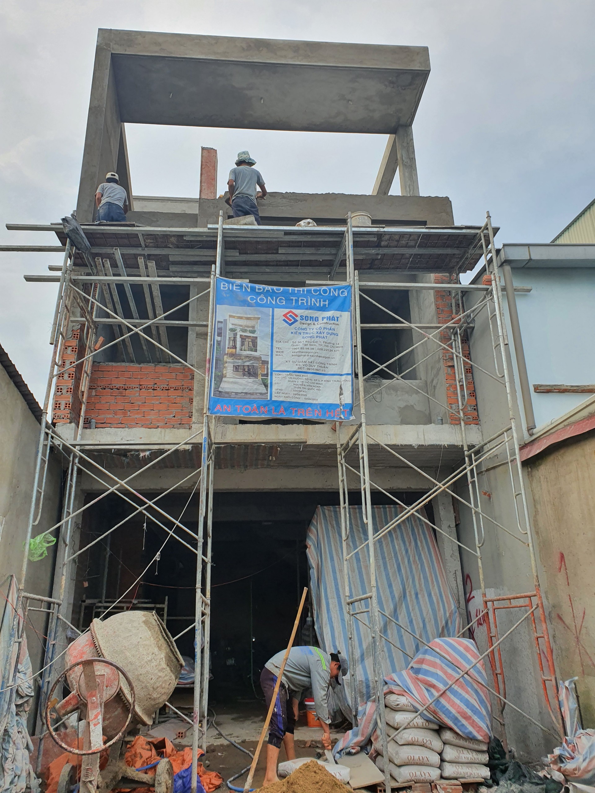 Ngôi nhà 1 trệt 1 lầu sân thượng nên sử dụng móng băng thay thế móng cọc ép tải bê tông cốt thép. Tính 50% diện tích xây dựng. Ngôi nhà khởi công ngày 25/9 và bàn giao cho chú Hoan ngày 11/01.