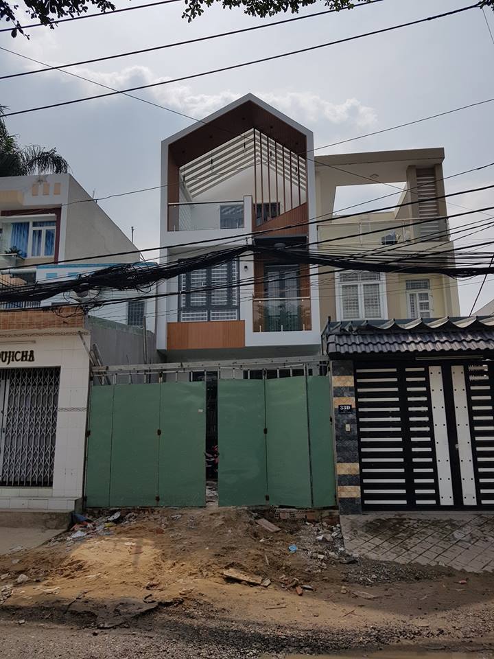 Đây là cách lấy sáng phổ biến nhất nếu nhà không có ban công với cách bố trí hợp lý ngôi nhà sẽ rất đẹp mắt khi nhìn vào từ bên ngoài. Bên dưới là mẫu nhà 3 tầng mặt tiền 8m của gia đình chú Thịnh thi công trong đất dự án ở Bình Chánh không cho ra phép ban công, kiến trúc sư Quân thiết kế kết hợp 2 ô cửa sổ lớn thông hai 2 tầng của phòng ngủ cực kì độc đáo kết hợp logia cùng mái che xéo tạo điểm nhấn cho mặt tiền thu hút.